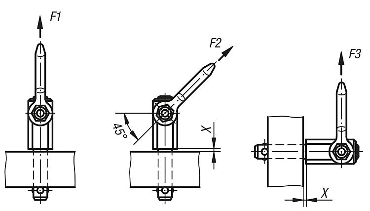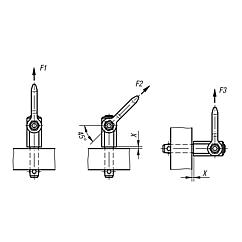 规格 X 最小值、F1、F2 和 F3 按照 DIN EN 13155 标准进行测试,测试负载相当于额定负载的 3 倍。