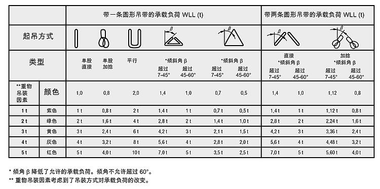 圆形吊装带的颜色根据颜色代码来分辨编制吊装工具的承载能力。