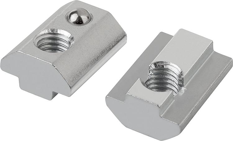 产品说明材料:钢制。规格:镀锌。提示:适用高负载连接。凸肩嵌入至型材槽内,受力转移到型材。螺母高度增加,可以拧入更多螺纹。这种螺母只能从型材端面推入型材槽内。通过弹簧顶珠可定位于型槽任意位置。特点: