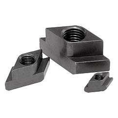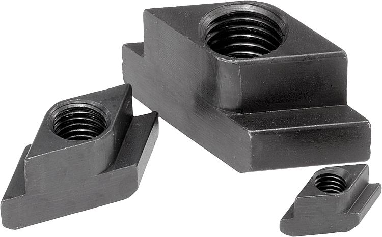 产品说明材料:调制钢。规格:强度8级,黑色氧化处理。提示:菱形T形螺母的优势在于可以从上方安装。尤其适用于T形槽很长,或者不便于从侧面安装T形螺母或T形螺栓的场合。应用:从上方装入,然后旋转直到锁死位置。特点: