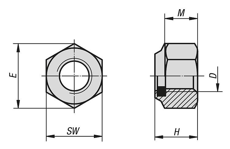 带尼龙夹紧件的六角螺母,高型DIN 982,增强型