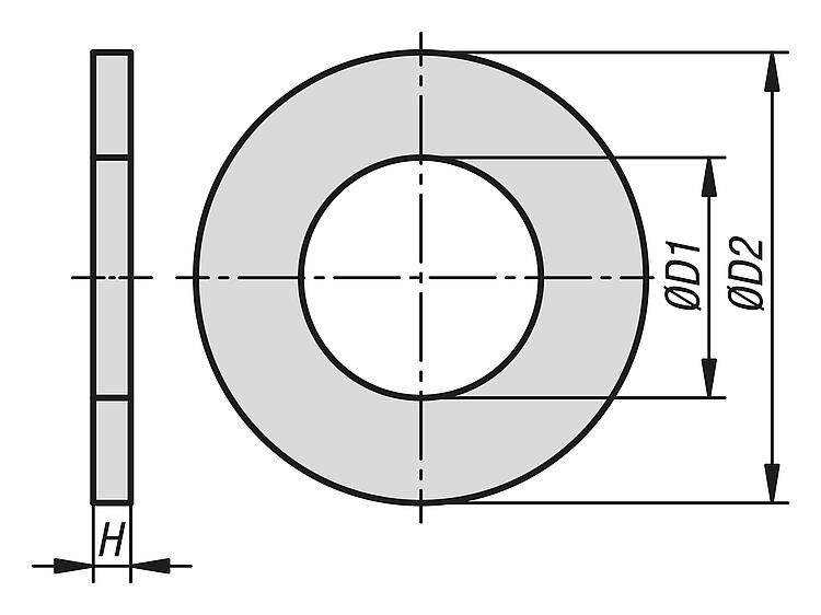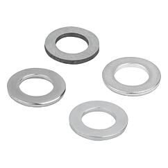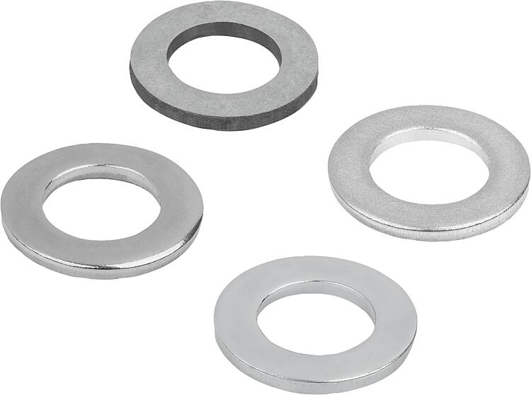 提示:DIN 433 垫圈是根据 DIN 433 标准制造的垫圈。垫圈用于将载荷分散在更大的区域,防止螺钉头或螺母陷入材料中。特点: