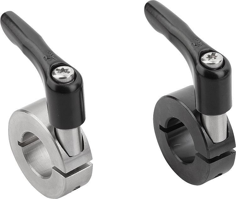 提示:带有锁紧手柄的开口型夹紧环以均匀的夹持力卡箍轴杆。从而实现优异的配合精度,并在不损坏轴杆的前提下达到极为强大的夹持力。