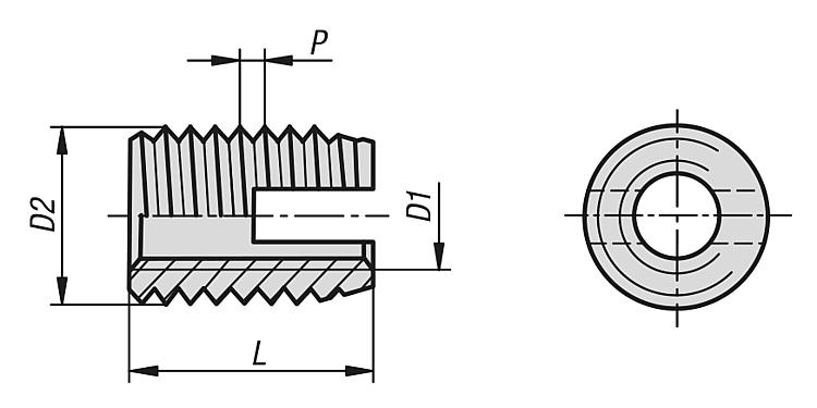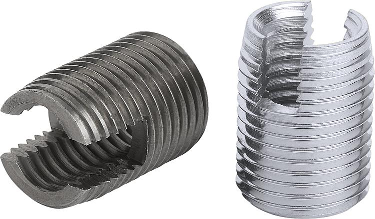 提示:自攻螺套可为硬度较低的材料建立高负载能力、耐磨损、抗振的螺纹连接,如铝、铝合金、黄铜、青铜、铸铁、热固性塑料和热塑性塑料。