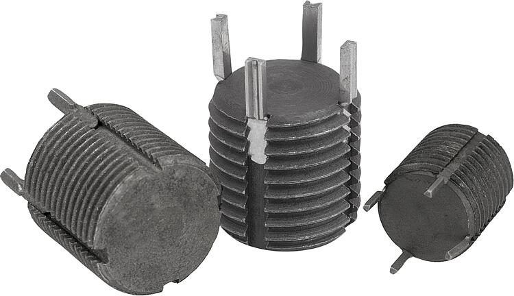 实心型螺套适用于多种材料,包括轻金属合金及铸件。M6以下为2个锁销,超过M6的螺套带4个锁销。
