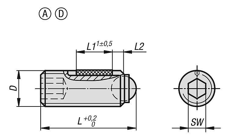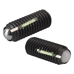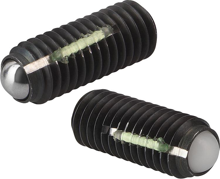 产品说明材料:螺栓调质钢,强度等级 10.9。 轴承钢或 POM 制滚珠。 螺纹锁紧尼龙。规格:黑色螺栓。 淬火钢珠,亮色。提示:这种不含栓头的波珠螺丝(圆波珠)用于夹紧面平整、光洁的场合。图纸提示:A 型: 钢球 D 型: POM 珠
