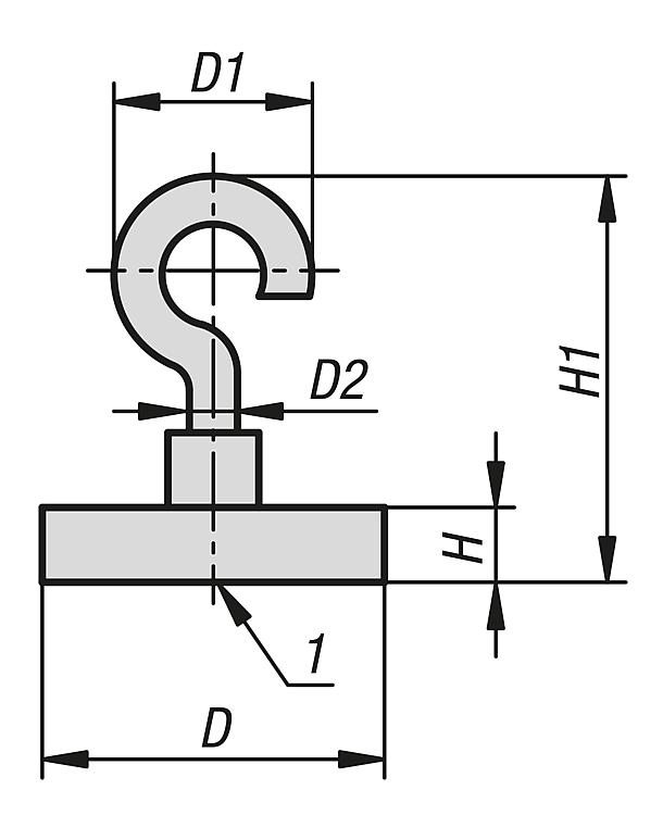 规格:镀锌壳体和挂钩。提示:带遮盖保护。永磁铁材料 NdFeB 较之于 SmCo,吸力再度提高了大约 10-20 %。温度范围:最大 80 °C。图纸提示: