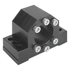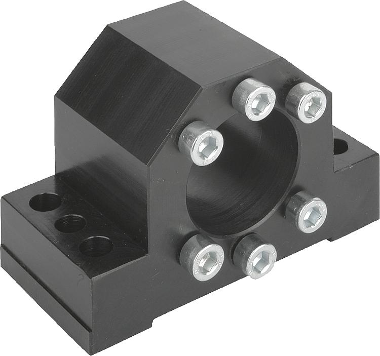 产品说明材料:钢制。规格:黑色氧化处理。提示:壳体适用于安装符合 DIN 69051-5的法兰螺母。丝杠支承的轴高与固定滑块单元 24072 和浮动滑块单元 24074 匹配。壳体可从上或从下拧紧,并可用两个锥形销或圆柱销固定。