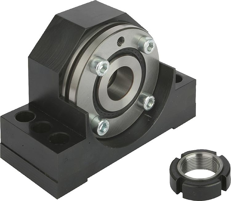 产品说明材料:钢制壳体。规格:经发蓝处理的壳体。提示:丝杠支承的轴高与浮动滑块单元 24074 和法兰螺母 24070 的壳体匹配。壳体可从上或从下拧紧,并可用两个锥形销或圆柱销固定。两侧均可做基准面。