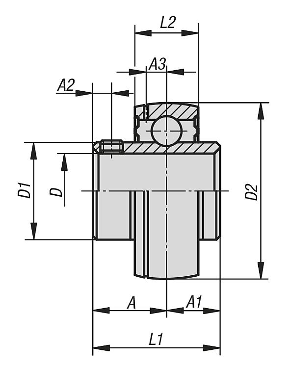 提示:嵌入轴承在其内部结构中对应 6200 和 6300 系列标准向心球轴承。但其具有可更轻易地固定在轴上的加宽内环。内环为正公差。使用具有 h 公差过渡或滑配合的轴可实现这种效果。通过 2 个位移 120° 的螺纹销将轴固定在内环上。