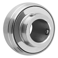 橡胶 NBR 制密封件。 规格:两侧密封且带球形外环。 可重新润滑。提示:嵌入轴承在其内部结构中对应 6200 和 6300 系列标准向心球轴承。但其具有可更轻易地固定在轴上的加宽内环。内环为正公差。使用具有 h 公差过渡或滑配合的轴可实现这种效果。通过 2 个位移 120° 的螺纹销将轴固定在内环上。