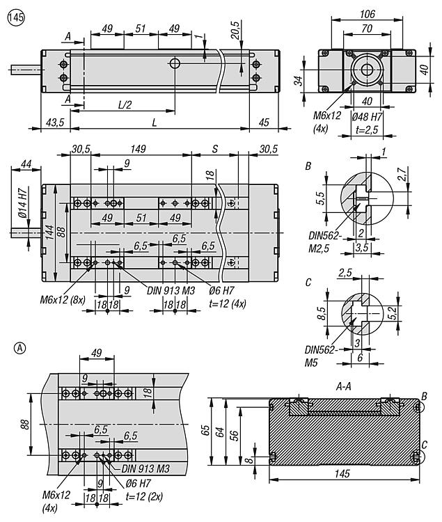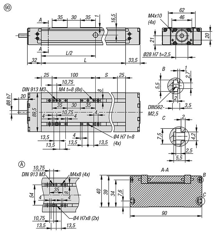 带滚珠丝杠和两个型材导轨的直线轴,A 型,短型