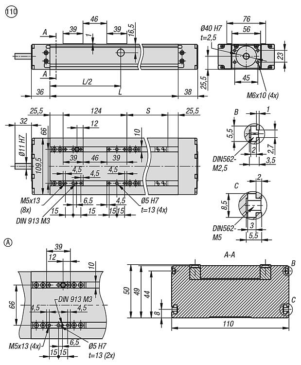 滑座的侧面和顶面设有螺纹孔和额外的定心孔。使用我们的定心环 20240,可精准地将其它连接件安装到滑座上。
