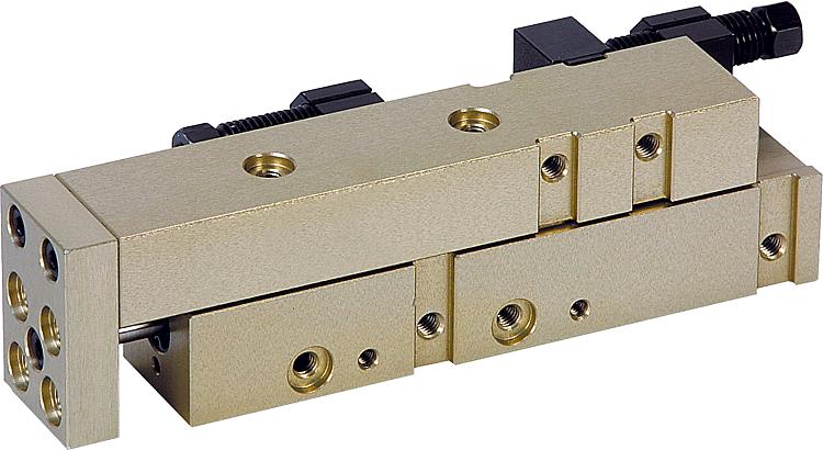 产品说明材料:高强度铝制壳体。 钢制止动系统。规格:经阳极氧化处理的壳体。 经硬化和发蓝处理的止动系统。提示:具有循环滚珠轴承导轨和最大 12N 负载能力的较小安装空间的免维护导杆气缸。通过二位四通或二位五通换向阀控制。通过压缩空气 4-8 bar,连续,已过滤(10µm),干燥,已加油或未加油进行驱动。压缩空气接口 M3。 相同结构尺寸的模块无需适配板即可通过精确定心系统借助定心环 20240 互相组合。 止动系统的位置是可调的。