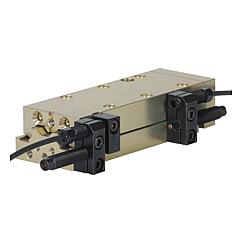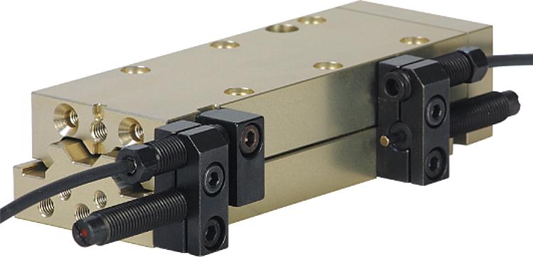 具有循环滚珠轴承导轨和最大 30 N 负载能力的较小安装空间的免维护导杆气缸。通过二位四通或二位五通换向阀控制。通过压缩空气 4-8 bar,连续,已过滤(10µm),干燥,已加油或未加油进行驱动。压缩空气接口 M5。