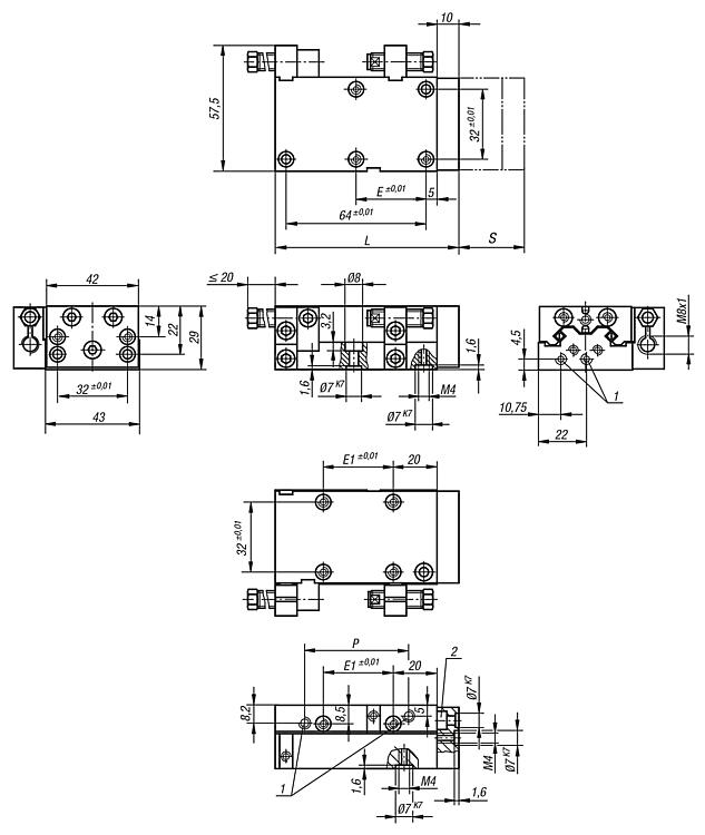 2) 圆柱头螺栓 ISO 4762-M4 沉孔