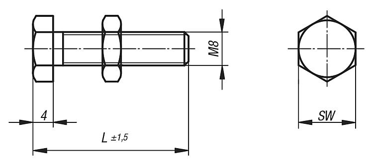 Datasheet 20010 钢制止动螺栓,强度等级 8.8。