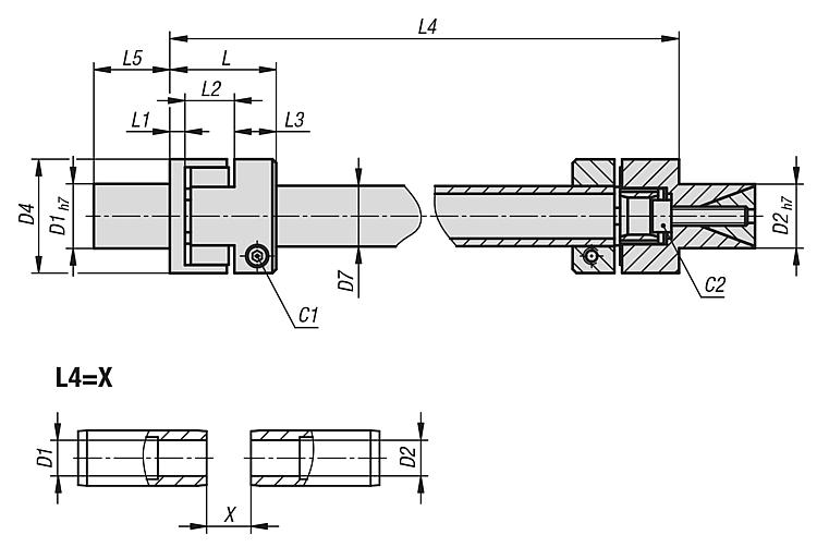 | 订货号 | 尺寸 | C1 | C2 | D1 | D2 | D4 | D7 | L | L1 | L2 | L3 | L4 min. | L5 | 额定扭矩 Nm | CAD | 配件 | 价格 | 订购 |