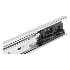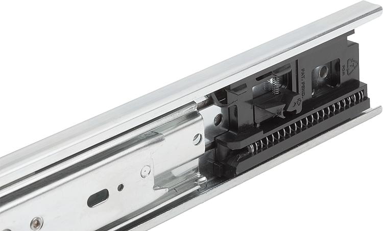 轻轻施加压力,伸缩滑轨可自行运行,几乎无噪音。指定的负载能力以 450 mm 轨道距离确定,为 80,000 周期时的最大值。