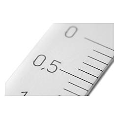 带自贴型背面的刚性规格不锈钢制码尺。横截面 15 x 1 mm。