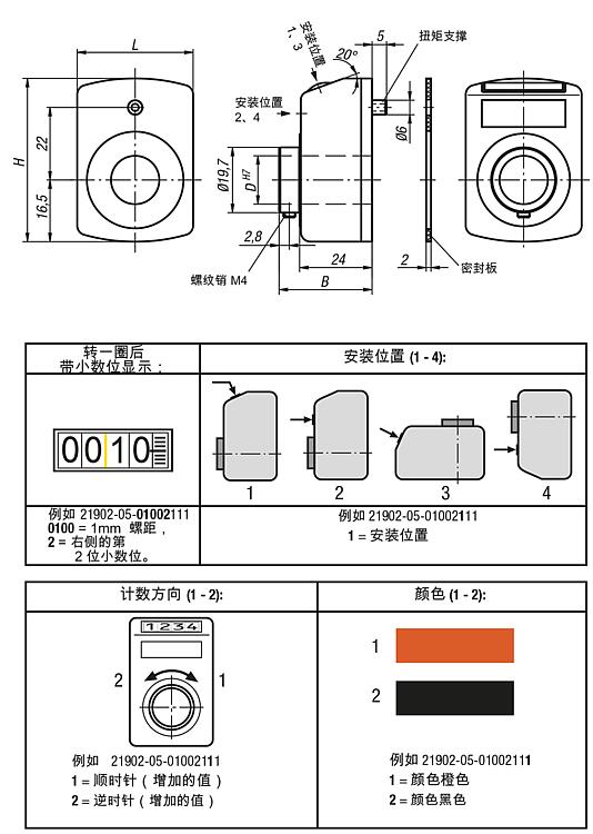 位置指示器特点在于小巧的设计,带有清晰的指示器和准确的读数。它们尤其适合较小的丝杠螺距和轴径。在背面有个防止扭矩的定位孔。