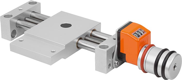 数字位置指示器具有 0.1 mm 的显示精度,数字按顺时针方向上升。位置指示器的显示值可以通过旋转传动环来调节,无需使用工具。位置指示器的安装位置可以借助螺钉固定在 4 个位置上。