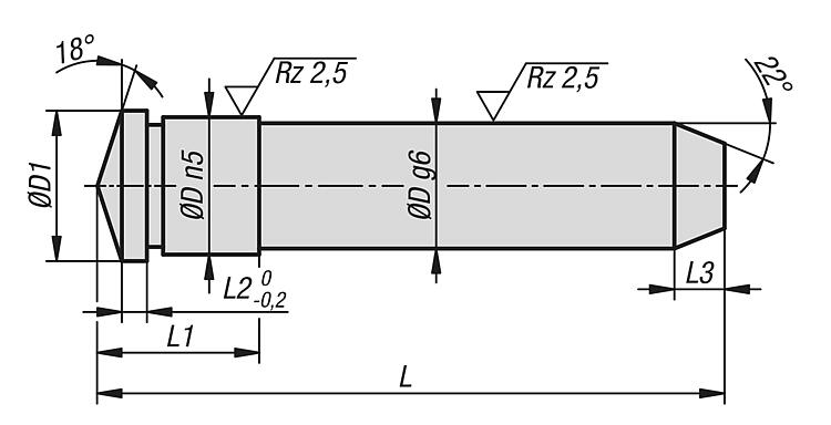 产品说明材料:渗碳钢制倾斜柱 1.7139。规格:经渗碳硬化处理。提示:带有锥形轴环的钢制倾斜柱是工具和模具制造中精确导向任务的理想解决方案。这些柱子用于对工具、模具或部件进行可靠而精确的定位。