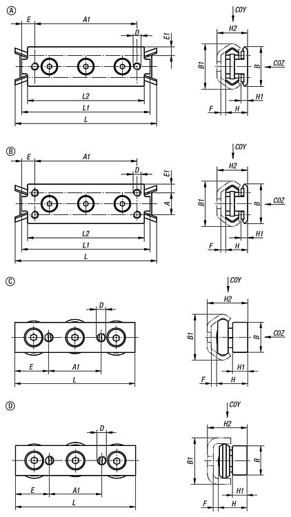 | 订货号 | 尺寸 | A | A1 | B | B1 | D | E | E1 | F | H | H1 | H2 | L | L1 | L2 | C0Y N | C0Z N | CAD | 配件 | 价格 | 订购 |