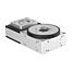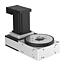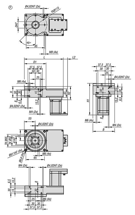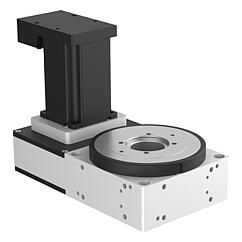 产品说明材料:铝制外壳。 不锈钢转盘和空心轴。规格:铝制,经阳极氧化处理。提示:齿带驱动的定位圆台适用于工件的精确快速定位。电动圆台的转盘由步进电机和齿形带驱动。由于采用了角度设计,旋转轴可以安装在各种机器结构中。 气动和电气线路可以穿过空心轴的较大孔,而不会影响转台的功能。此外,孔的公差设计为 H7,作为车削件的定心点。利用可调节定位环,可根据安装部件的位置任意固定旋转基准点。 轴承为交叉滚子轴承。可利用可选购的传感器支架(21085-02-901)安装接近开关。 我们提供下载的相应编程软件。