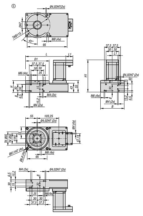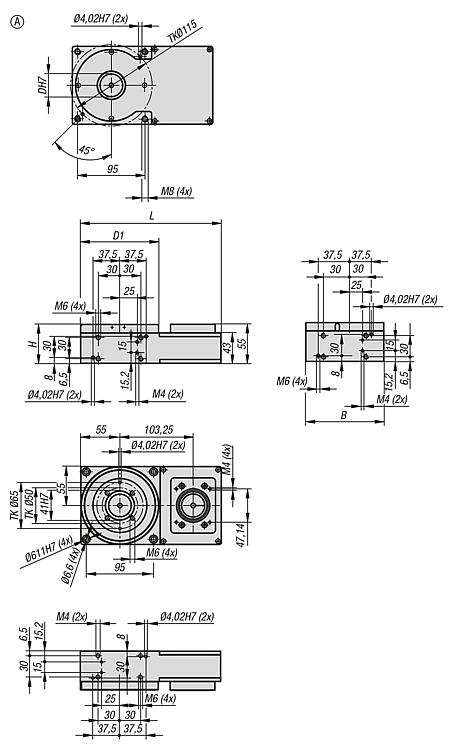 订货号 | 类型 | 形状类型 | 变速比 | L | B | H | H1 | D