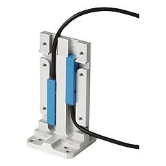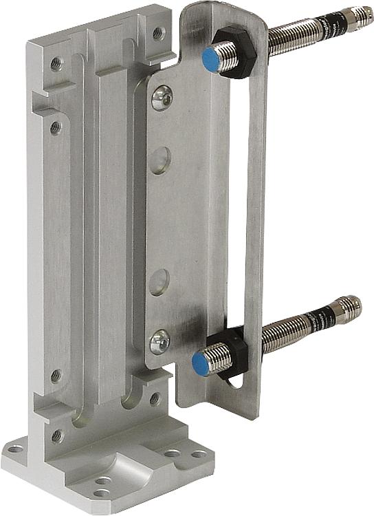 产品说明材料:铝合金。规格:阳极氧化。提示:安装板用于垂直安装带电气驱动的短型或长型定位台。带用于直接安装感应式接近开关 (20905-005) 的槽。接近开关可在已安装的定位单元中调整。螺纹孔 M4 用于固定传感器支架 21093。