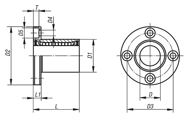 产品说明材料:外壳为钢制。 塑料保持架。 钢制滚珠。提示:线性滚珠轴承对应符合 ISO 10285-3。带两侧密封件。线性滚珠轴承配有一个塑料保持架。这确保了安静运行和突出的运行特性。带用于直接安装在壳体上的法兰。
