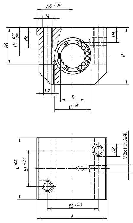 产品说明材料:铝制壳体。规格:亮色壳体。提示:这种预加工线性滑座由一个挤压成型铝外壳、自适应线性轴承 21510 和两侧密封件组成。利用固定环 DIN 472 固定壳体中的轴承。