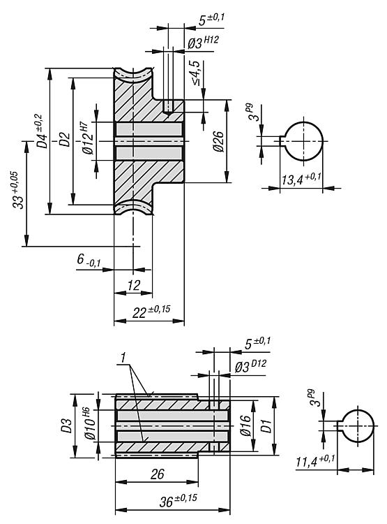 齿形的侧面形状为 K。啮合角为 15°。蜗轮组件已预先钻孔。