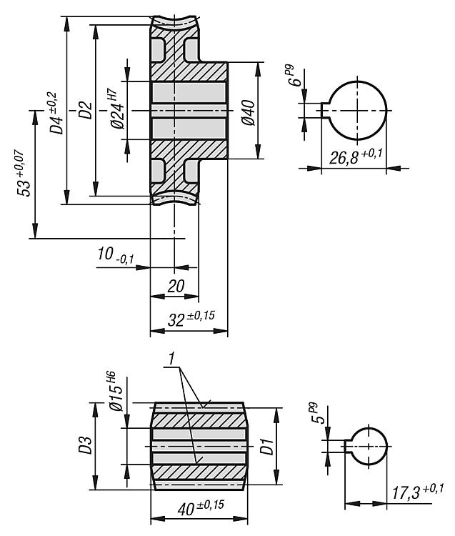 齿形的侧面形状为 K。啮合角为 15°。蜗轮组件已预先钻孔。