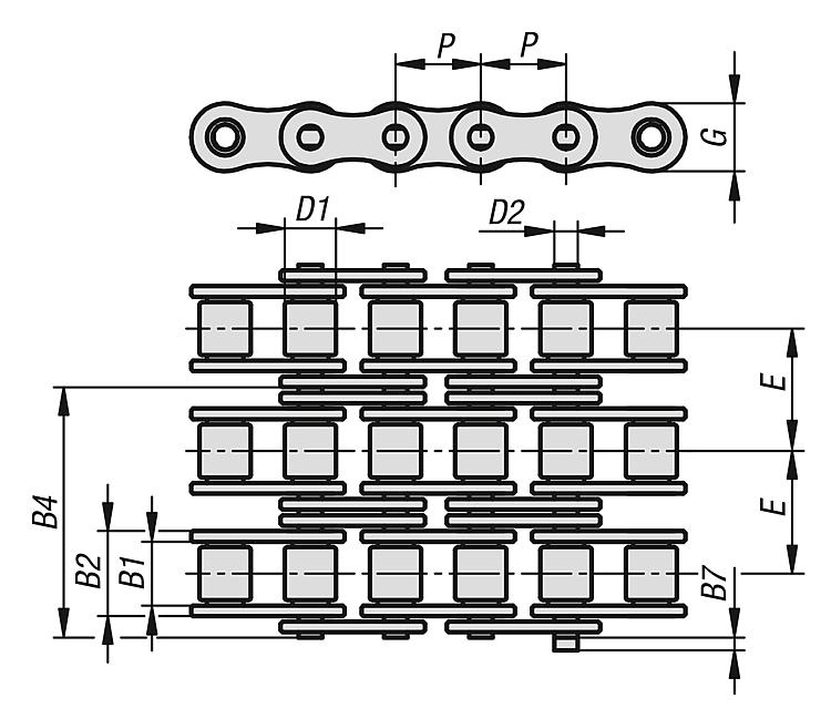 产品说明材料:钢制。规格:已预先拉长。订购须知:包装单元:5 米,奇数的链节数。两侧以一个内部链节终结。链节必须单独订购。提示:欧式滚子链条,符合 DIN ISO 606,带弧形的鱼尾板(ISO 编号 06 带直型鱼尾板)。所有链条已预先拉长。首次润滑:基于矿物油的防撞油。