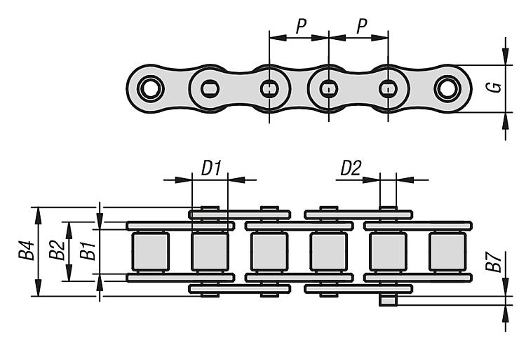 规格:已预先拉长。订购须知:包装单元:5 米,奇数的链节数。两侧以一个内部链节终结。链节必须单独订购。提示:欧式滚子链条,符合 DIN ISO 606,带弧形的鱼尾板(ISO 编号 06 带直型鱼尾板所有链条已预先拉长。未润滑,