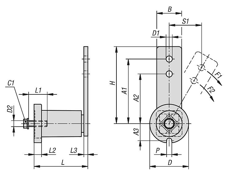 穿过一个孔,将夹紧元件固定在机器部件上。如有必要,可通过定位槽“P”插入重型张紧销以支撑扭矩。温度范围:-55 °C 至 +85 °C。特点: 下载此处为收集信息的 PDF: