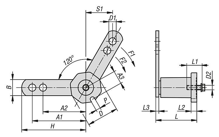 | D1 | D2 | H | L | L1 | L2 | L3 | P | S1 | 螺栓 锁紧扭矩 C1 Nm | F1 N | F2 N | CAD | 配件 | 价格 | 订购 |