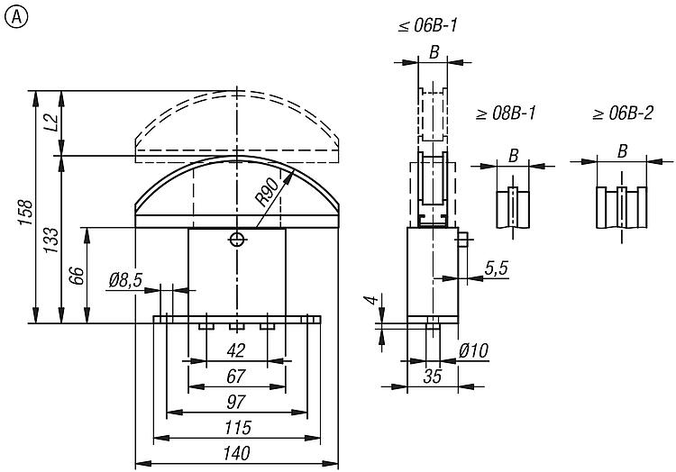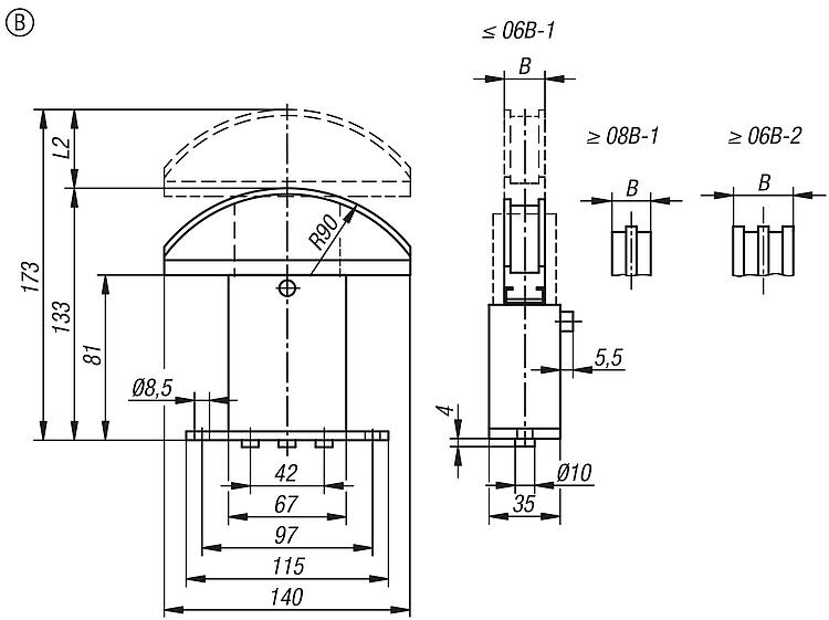 A 型:短外壳。 B 型:长外壳。 对于运行方向交替的情况,我们建议使用带长外壳的链条张紧器。我们仅提供加强弹簧弹力规格。