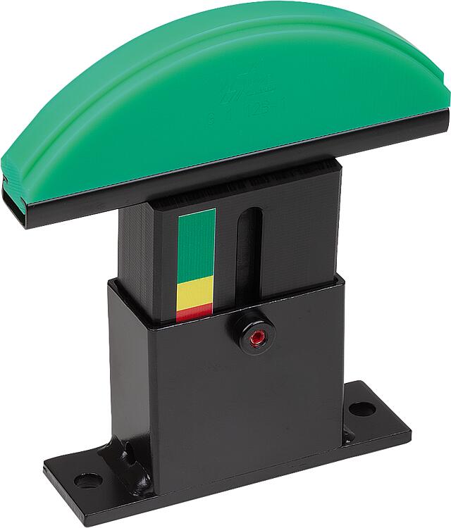 通过三色磨损指示器,可轻松监控磨损情况 绿色:正常 黄色:仍然正常 红色:弹簧行程不足。必须重新调整链条张紧器。如果所有调整选项的范围都无法保证足够的调节,则必须更换链条。温度范围:-20 °C 到 +60 °C(短时温度达 +80 °C)。装配:最好将其直接安装在驱动轮后方,以尽可能缩短需要张紧的松弛边长度。为减少磨损,应使多个链节接触。 尺寸为 1 的链条张紧器在交付时处于锁定状态。只有在安装后,才能松开锁紧螺钉上的夹紧芯。拧松三个锁紧螺钉的中心约四圈。仅在必要时拧松第二和第三个弹簧。附件:角形托架 22281-90。 下载此处为收集信息的 PDF: