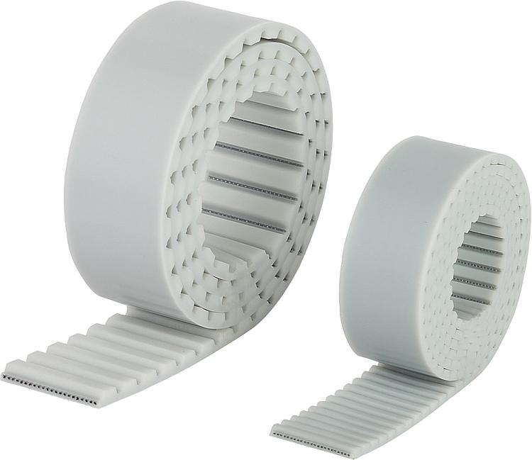 产品说明材料:聚氨酯 (PU) 和钢帘线。提示:带梯形型材和增强型钢帘线(相对 T 系列)的齿带。用于均匀分配力和负载下较少齿部变形的优化齿廓。用于较高极限负载和较低皮带伸长度的高性能钢衬。多边效应降低运行更平静。尤其适合在需要精确轴和角度定位时的线性驱动和较低功率传输。聚氨酯皮带可以焊接。皮带已焊接时,可传输的功率减少约 50%。
