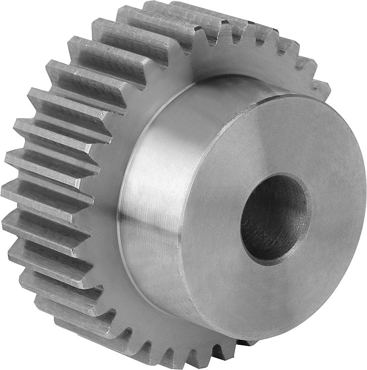 正齿轮有定心孔或经过预钻孔(这可能因生产技术而异)。因此,表中给出的 D2 最大尺寸是提供正齿轮的孔的最大值。预钻孔/定心孔可根据客户要求设置装配孔、带键槽的装配孔或螺纹孔。