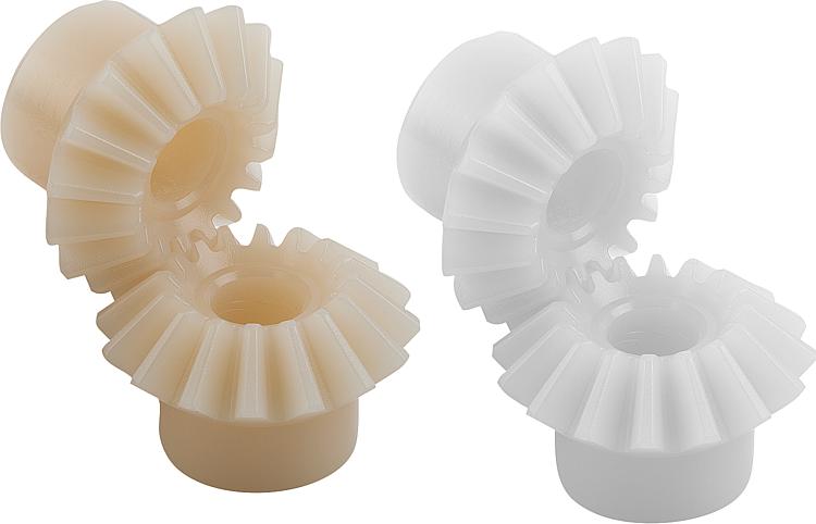 产品说明材料:聚缩醛 (POM) 或聚酮 (PK)。规格:注塑,竖直啮合。啮合角 20°。轴角度 = 90°。