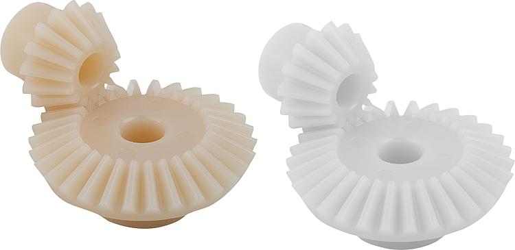 产品说明材料:聚缩醛 (POM) 或聚酮 (PK)。规格:注塑,竖直啮合。啮合角 20°。轴角度 = 90°。