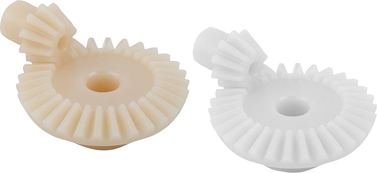 产品说明材料:聚缩醛 (POM) 或聚酮 (PK)。规格:注塑,竖直啮合。啮合角 20°。轴角度 = 90°。
