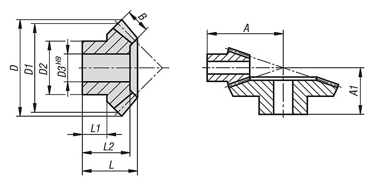 锥形齿轮单件提供。如需锥形齿轮对,请为此一起订购配对齿轮。