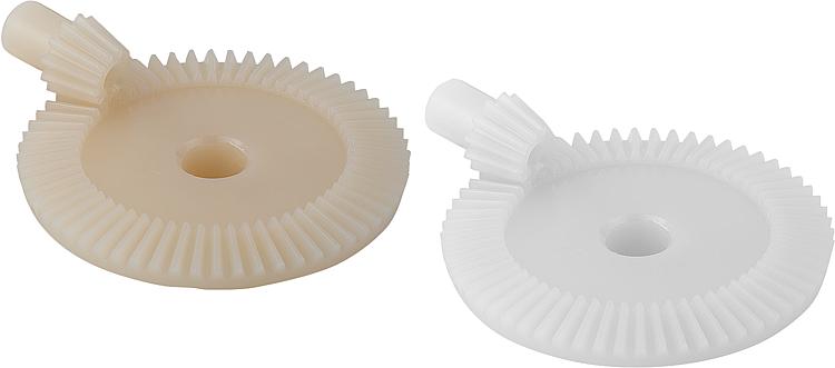 产品说明材料:聚缩醛 (POM) 或聚酮 (PK)。规格:注塑,竖直啮合。啮合角 20°。轴角度 = 90°。