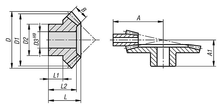 锥形齿轮单件提供。如需锥形齿轮对,请为此一起订购配对齿轮。