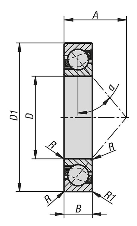 | D1 | B | R min. | R1 min. | α | A | 额定负载 动态 N | 额定负载 静态 N | 最高转速 1/min. | CAD | 配件 | 价格 | 订购 |